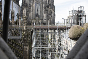 Im Anschluss erfolgt der Aufbau des neuen Bauaufzugs durch die GEDA GmbH mit Unterstützung eines 150-Tonnen-Mobilkrans der Wasel GmbH. Eine besondere Herausforderung für die Baulogistik sowie die Einrichtung des Kranstellplatzes ergibt sich durch die parallel laufende Baustelle zur Umgestaltung der nördlichen Domumgebung. Ein reibungsloser Ablauf wird durch die enge und konstruktive Abstimmung aller Beteiligten sowie die sehr gute Zusammenarbeit mit dem Amt für Brücken, Tunnel und Stadtbahnbau der Stadt Köln und der HOCHTIEF AG sichergestellt.